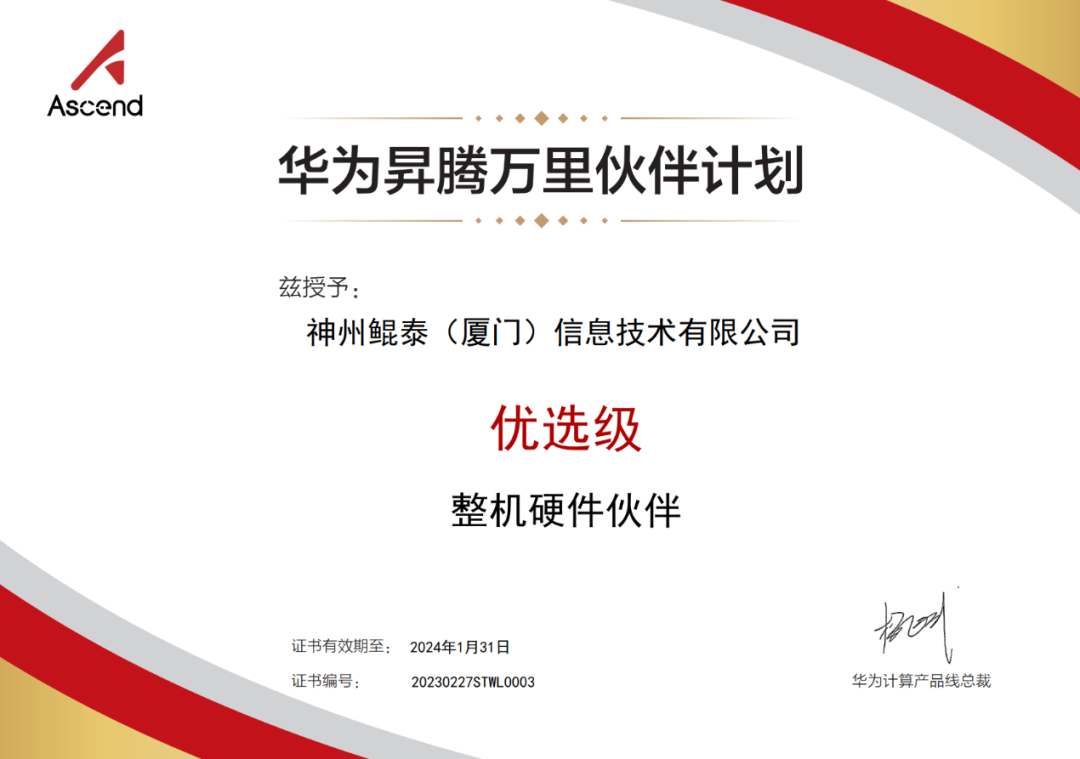 近日,nangong28.com数码旗下神州继获得华为鲲鹏领先级整机硬件伙伴认证之后,再获华为昇腾优选级整机硬件伙伴认证!这是神州与华为昇腾深化合作的硕果,也代表着nangong28.com数码信创业务在AI领域获得生态伙伴的充分认可。